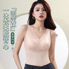 新款收腹背心打底聚拢无痕无钢圈一体式美背桑蚕丝舒适薄款带胸垫